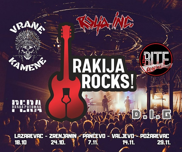 Uoči Rock n’ Rakija festivala koji će probuditi rokenrol Beograd od 4. do 6. decembra 2025. godine u Dorćol Platzu, kreće serija uvodnih Rakija Rocks! svirki u pet gradova u Srbiji.