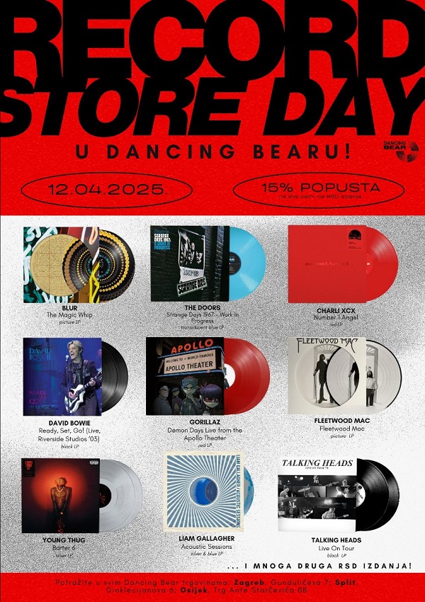 U subotu, 12. aprila, u prodavnice Dancing Bear u Zagrebu, Splitu i Osijeku stiže još jedno izdanje Record Store Day-a - dana u godini koji slavi muziku, diskografsku kulturu i nezavisne prodavnice koje ih neguju.