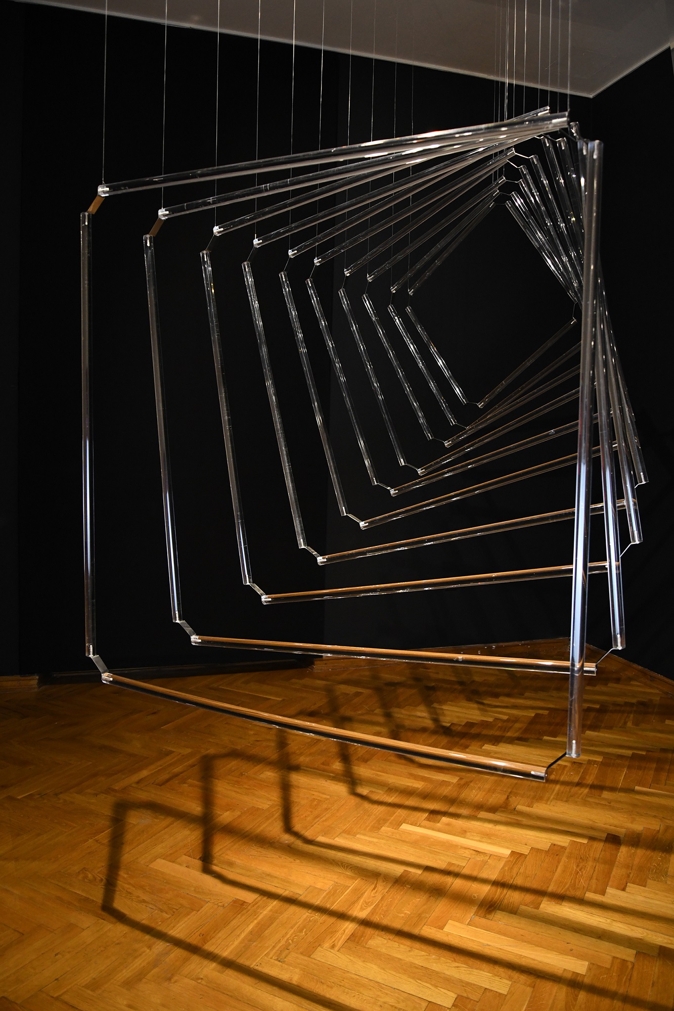 Instalacija ,,Horizon”, jedan od nosećih radova izložbe, transformiše galerijski prostor u sugestivno polje perceptivnog istraživanja, stvarajući ambijent koji ,,beži ka horizontu”. Upotrebom providnih materijala i reflerujućih površina, Dek destabilizuje odnos posmatrača prema fizičkom prostoru i otvara put ka nepoznatom. Dimenzija ketanja uvodi se mobilnom skulpturom ,,Spatial lines”, dok je dizajnersko umeće i utisak ,,promišljene udobnosti” otelotvoreno serijom rasvetnih tela pod nazivom ,,Candle light”.