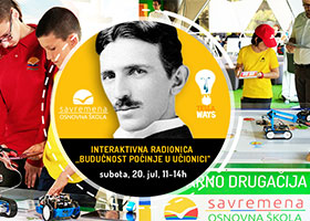 U okviru manifastacije Tesla dani 2019, besplatna radionica osnove programiranja i robotike za decu održaće se 20. jula od 11 do 14 sati u beogradskoj Savremenoj osnovnoj školi i gimnaziji (Masarikova 5, ulaz iz Kralja Milana, Beograđanka, III sprat). Na ovoj zanimljivoj interaktivnoj radionici „Budućnost počinje u učionici” deca uzrasta od 7 do 11 godina imaće priliku da se uzpomoć VR-a sretnu sa samim Nikolom Teslom, da na jedinstvenom Smart STEAM stolu savladaju osnove programiranja kroz pokretanje i upravljanje robotima. Pored Smart STEAM stola, učesnike očekuje i upoznavanje sa zanimljivim robotima i setovima za njihovo programiranje i upravljanje.