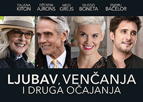 Veliko nam je zadovoljstvo da vas obavestimo da romantična komedija "LJUBAV, VENČANJA I DRUGA OČAJANJA" (LOVE, WEDDINGS AND OTHER DISASTERS) stiže u naše bioskope 24. decembra. Fantastičnu glumačku ekipu filma čine Dajana Kiton, Džeremi Ajrons, Megi Grejs, Dijego Boneta i Endru Bačelor. Nekoliko toplih i duhovitih priča koje spaja ljubav obećavaju da ćete provesti jedno prijatno i veselo veče u svom omiljenom bioskopu. Svima nam je prekopotreban smeh i opuštanje u trenutnoj situaciji. Naši bioskopi definitivno poštuju propisane mere zaštite, njihov prostor se redovno dezinfikuje i oni predstavljaju mesta gde se uz preporuku nošenja maske možete osećati potpuno bezbedno i sigurno.