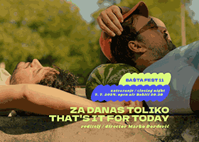 U nedelju 7. jula, u okviru revijalnog programa 11. Bašta Fasta, na Open air sceni u parku “Borići” publika će imati priliku da pogleda film “Za danas toliko” reditelja Marka Đorđevića, koji će nakon projekcije zatvoriti festival. Bašta Fest time nastavlja staru tradiciju da, u okviru revijalnog programa, festival zatvori dugometražnim ostvarenjem koje je, prema mišljenju Bašta tima, obeležilo proteklu godinu. Nakon veoma uspešnog debitantskog ostvarenja “Moj jutarnji smeh”, Markov drugi film je osvojio simpatije publike širom zemlje, a u Bajinoj Bašti će biti prikazan prvi put.