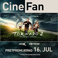 Uz slogan “Ovog leta zaboravi na strah!” 16. jula biće priređena pretpermijera blokbastera TORNADO 2 sa početkom u 19h u CineStar bioskopima u Srbiji (Beograd: Ada Mall, Novi Sad: Big, Zrenjanin: Big, Pančevo: Big), u okviru CineFan događaja. Publika će se pridružiti lovcima na tornado uz još više akcije, drame i uzbuđenja, i to u 4DX formatu. Najsrećnije posetioce očekuju i pokloni. Ulaznice za ovu pretpremijeru mogu se nabaviti na blagajni bioskopa i onlajn na sajtu cinestarcinemas.rs. Od producenata uspešnih franšiza iz doba Jure, Borna i Indijane Džonsa dolazi novo poglavlje blokbastera iz 1996. godine.