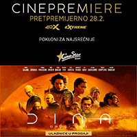 Pretpremijerno 28.2. publika u Srbiji će doživeti pravi filmski spektakl DINA: DRUGI DEO, u okviru CinePremiere eventa u bioskopima CineStar u Beogradu (Ada Mall), Novom Sadu (BIG), Pančevu (BIG) i Zrenjaninu (BIG). U ovom spektaklu glavne uloge igraju najpopularnija holivudska glumica mlađe generacije Zendaja i jedan od najtalentovanijih mladih glumaca Timoti Šalame. Najsrećnije posetioce očekuju vredne Dina knjige i pokloni iz filma, a uz ulaznicu se na poklon dobija limited edition plakat iz filma (do isteka zaliha). Već uveliko vlada veliko interesovanje za pretpremijeru filma DINA: DRUGI DEO, a za vrhunski doživljaj na raspolaganju su CineStar formati: 4DX i eXtreme!