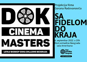 Gost septembarskog programa DOK CINEMA MASTERS, filmskog ciklusa Doma omladine Beograda koji predstavlja klasike kratkometražnih i dugometražnih dokumentarnih ostvarenja, biće Goran Radovanović, scenarista, reditelj i producent. U ponedeljak, 5. septembar od 20:00 biće prikazani njegovi filmovi “COLUMBA URBICA” i “KASTING”, dok je u utorak, 6. septembra od 20:00 na programu film “SA FIDELOM DO KRAJA”. Projekcije su u sali Amerikana, a ulaz je slobodan. Goran Radovanović oba dana biće gost moderatorke i autorke programa Jovane Nikolić i odgovaraće na njena i pitanja publike.