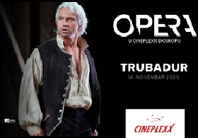 U subotu, 14. novembra od 17 časova, na velikom platnu Cineplexx UŠĆE Shopping Center bioskopa biće prikazan snimak čuvene opere „Trubadur“ iz Metropolitena. Verdijeva opera koja je prvi put izvedena 1853. godine, ovoga puta dolazi u punom sjaju iz jedne od najpoznatijih operskih kuća na svetu. Ruske zvezde, Ana Netrebko i Dmitri Hvorostovski, prvi put su se našli na istoj sceni posle 2002. godine, uz dirigenta Marka Armilijata. Ova opera u četiri čina govori o vračanju, ubistvu i osveti. Radnja počinje spaljivanjem jedne žene na lomači koja se sumnjiči za veštičarenje. Njena ćerka pokušava da je osveti i baca dete njenog dželata u vatru.