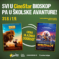 Ostalo je još malo vremena do početka nove školske godine, tako da mališani imaju prilike da se opuste ali i zagreju za predstojeći period uz bioskopski vikend 31.8. i 1.9. u CineStar bioskopima u Beogradu, Novom Sadu, Pančevu i Zrenjaninu uz “Back 2 School vikend” i  cenu ulaznice od  samo 300 dinara.  Na raspolaganju su najnoviji sinhronizovani animirani filmovi, među kojima su “Panda u Africi”, “Nerazdvojni”, “Grozan ja 4”, “Izmišljeni prijatelji”. Pored uživanja u filmu, posetioce očekuju vredni pokloni za najsrećnije koje je pripremio Converse, a izdavačka kuća Čarobna knjiga poklanja 60 knjiga, da se započne školska godina sa osmehom.
