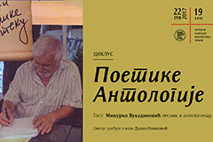 U četvrtak 22. juna, u 19 sati, u Atrijumu Narodne biblioteke Srbije, možete da prisustvujete trećem programu u okviru novog ciklusa poetskih večeri „Poetike-Antologije“, koji uređuje i vodi pesnik Duško Novaković. Treći učesnik je pesnik i antologičar Miljurko Vukadinović (1953. godine, u Gornjem Svraču). Na književnoj večeri biće reči o opusu autora za koga kritika kaže da je vidno uticao na povećanje stepena razuđenosti savremene srpske poezije, budući da ona izmiče klasičnim tumačenjima.