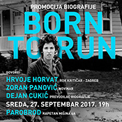 Promocija autobiografije - knjige Brusa Springstina, jednog od najvažnijih  svetskih savremenika  pop-rok kulture  ’’Born to Run’’ ( prevod Dejan Cukić, izdanje Laguna, 2017) godinu dana nakon izlaska iz štampe britanskog  „Simon and Schuster“ originala, kao i hrvatskog  prevoda, prvi put u Srbiji i Beogradu, održaće se u sredu, 27. septembra 2017. godine od 19 časova u Parobrodu. O ovoj ’paradoksalnoj’ ispovesti  američke  mega zvezde, nazvane po njegovom trećem studijskom albumu iz 1975. godine, zaštitnika potlačenih i marginalaca, govoriće: Hrvoje Horvat, zagrebački  rock kritičar, novinar i kolekcionar gitara, Zoran Panović, beogradski novinar, koji je šest puta bio na Springstinovim koncertima i Dejan Cukić, beogradski muzičar i prevodilac izdanja, koji  opaskama u fusnotama, još jednom otkriva zavidnu erudiciju iz pop i rok kulture.
