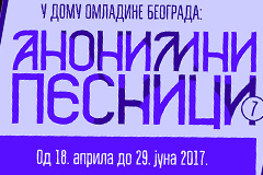 Od aprila meseca u Domu omladine Beograda počinje sedmi ciklus besplatne pesničke radionice Anonimni pesnici, namenjene neafirimisanim ljubiteljima poezije. Radionica će se održavati od 18.04. do 29.06. 2017. godine (ukupno deset dvosatnih termina). Broj učesnika je ograničen, a radionica je namenjena uzrastu od 18 do 40 godina. Učešće je besplatno, ali su prijave obavezne putem mejla: Ova adresa el. pošte je zaštićena od spambotova. Omogućite JavaScript da biste je videli.. Rok za slanje prijava je 05.04.2017.