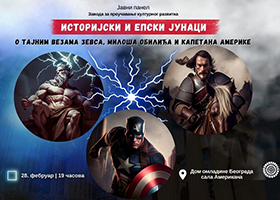 O tajnim vezama Zevsa, Miloša Obilića i Kapetana Amerike - Novi veliki panel koji će otkriti tajne veze Zevsa, Miloša Obilića i Kapetana Amerike pod nazivom „Istorijski i epski junaci” u organizaciji Zaprokula održaće se u utorak, 28. februara u 19 časova u Domu omladine Beograda (sala AMERIKANA). Pokrenućemo značajne teme koje okupiraju javnost od davnina do savremenog sveta – na koji način motivi iz prošlosti promiču i ulaze u današnju kulturu. Da li naš panteon komunicira sa globalnim? Istorija i epika u svom antagonizmu, otkriće nam da li je, i na koji način, Marko Kraljević mistifikacija Peruna, kao i koje savremene heroje danas mistifikujemo.
