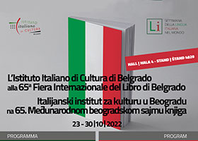 Italija će imati svoj štand na 65. Beogradskom međunarodnom sajmu knjiga, najznačajnijoj kulturnoj i izdavačkoj manifestaciji na Balkanu koja će se održati od 23. do 30. oktobra 2022. godine. Zahvaljujući angažovanju Italijanskog instituta za kulturu u Beogradu, tokom manifestacije biće organizovani brojni susreti sa izuzetnim gostima: Darijom Binjardi, Davideom Tofolom i Paolom Bristot, Antoniom Kučinijelom, Dunjom Badnjević, Frančeskom Rolandi, Danijeleom Meučijem, Ajom Jung, Majom Herman Sekulić.
