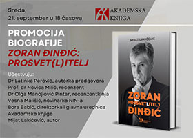 Promocija biografije ZORAN ĐINĐIĆ: PROSVET(L)ITELJ Mijata Lakićevića biće održana u sredu, 21. septembra u 18 časova u Medija centru u Beogradu (Terazije 3). Na promociji će govoriti autorka predgovora dr Latinka Perović (putem video prenosa), recenzent prof. dr Novica Milić, recenzentkinja dr Olga Manojlović Pintar, novinarka NIN-a Vesna Mališić, direktorka i glavna urednica Akademske knjige Bora Babić i autor biografije Mijat Lakićević. Iz pera publiciste Mijata Lakićevića dolazi odgovor na pitanje: ko je bio Zoran Đinđić? Po mome mišljenju to je do sada najpotpunija intelektualna biografija Zorana Đinđića. Precizna i potresna biografija. - Dr Latinka Perović