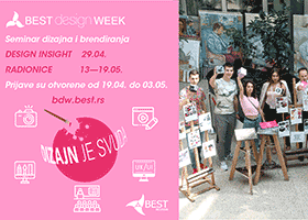 Udruženje studenata tehnike Evrope – Beograd, trinaesti put zaredom organizuje seminar dizajna i brendiranja, BEST design WEEK, od 13. do 19. maja 2023. Godine, koji će se održati na Fakutetu oranizacionih nauka. Seminar je kreiran od strane lokalne grupe BEST Beograd i već dugi niz godina uspešno napreduje i visoko se pozicionira, kako po kvalitetu obrazovanja koje nudi kroz radionice i predavanja, tako i po vizuelnom identitetu, kreativnosti i inovativnosti. Radionice su namenjene svim zainteresovanim studentima koji tek ulaze u svet dizajna i brendiranja, kao i onima koji imaju iskustvo, ali i želju da saznaju nešto novo ili unaprede svoje znanje. Cilj projekta je da se obezbedi besplatno savladavanje, napredovanje i usavršavanje na polju grafičkog dizajna, web dizajna, digitalne fotografije i video montaže.