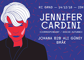 Jennifer Cardini, legenda elektronske muzičke scene, ponovo dolazi u Beograd! Ona će nastupiti u Kulturnom Centru Grad u petak 14. decembra od 23h. Jennifer je čitavu deceniju gradila svoju reputaciju u klubovima Pariza, nakon čega se preselila u Kolon što je ubrzalo njen uspeh na međunarodnoj sceni jer je ostvarila saradnju sa poznatom izdavačkom kućom Kompakt records. Njena harizima i raznovrstan pristup muzici omogućili su joj da nastupa u poznatim klubovima kao što su Panorama Bar, Nitsa i Fabric, a kao kreatorka muzičkog ukusa dokazala se osnivanjem izdavačke kuće Correspondant 2011. godine.