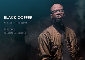 Kralj house zvuka i svetska superzvezda Black Coffee, vraća se u Barutanu u četvrtak 23. maja. Te večeri, ovaj kreativni genije doneće nam svoj karakterističan zvuk koji sadrži neisiljenu afričku esenciju savršeno se uklapajući sa tradicionalnim house vajbom, kroz jedan od svojih gotovo spiritualnih di-džej setova. Kreativni genije i jedan od apsolutnih fenomena savremene elektronske scene, Black Coffee, muzikom se bavi od davne 1995. godine. Njegova muzička karijera započinje univerzitetskim studijama džeza, nakon kojih je bio prateći vokal za Madalu Kunene. Ubrzo zatim, sa dvojicom prijatelja osniva urban soul trio pod nazivom SHANA (Simply Hot and Naturally African).