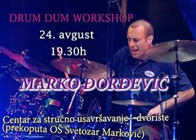 UG “Muzička komunikacija” s velikom radošću najavljuje prvu bubnjarsku radionicu u okviru desetog, jubilarnog Drum Dum Festa. Veliki prijatelj festivala, koji je svojim nastupima od samog početka podržavao DDF priču, jedan od najboljih bubnjara današnjice, profesor na prestižnom Berkli koledžu, Marko Đorđević je, nakon par godina, opet sa nama - link >> 24. avgusta u dvorištu Centra za stručno usavršavanje (preko puta OŠ „Svetorzar Marković“) Marko će za sve kolege bubnjare održati Drum Dum Workshop, a s obzirom da svi koji su bili na njegovim prethodnim radionicima, znaju kako on to radi, sa sigurnošću garantujemo izuzetan muzički događaj i za sve druge ljubitelje muzike i ritma.