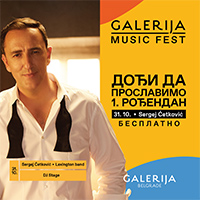 Galerija, najveća šoping, gastronomska i zabavna destinacija u regionu, proslavlja svoj prvi rođendan i tom prilikom priprema nezaboravnu žurku! U subotu i nedelju, 30. i 31. oktobra posetioce na dve bine očekuju koncerti nekih od najpoznatijih imena domaće scene. Subota je rezervisana za strava bit i mnogo đuskanja. Galerija muzički festival otvara Ana Lazarević poznatija kao AN NA. Od 18:35 sati na stejdž stiže Anđelina sa svojim hitovima „Sijam“ i „Tebe samo hoću“. AN NA i Anđelina su prave miljenice mlađe populacije, te će posetioce ovih koncerata obradovati vest da je nakon nastupa organizovan meet up na kom mogu da upoznaju ove talentovane devojke i naprave selfi sa njima.