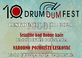 Za sve koji su željno iščekivali nova druženja na bubnjarskom festivalu u Leskovcu, stižu dobre vesti. Uprkos okolnostima koje nam ne idu na ruku, pre svega epidemiološkoj situaciji vezanoj za pandemiju Korona virusa kao i nenadoknadivom gubitku koji je organizacioni tim festivala doživeo u oktobru, odlaskom našeg dragog Gorana Trajkovića Trše, ali i u čast njegovom životu i delu, odlučili smo da održimo deseti Drum Dum Fest. Nažalost, jasno je da se situacija neprekidno komplikuje, ali je naša odluka da ipak ne preskočimo i ovu godinu i u okvirima koji su realni, organizujemo ovogodišnje druženje. Festival će biti održan 13. novembra.