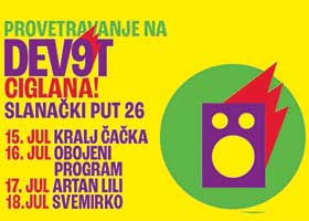 Posledice nedostatka svežeg vazduha su tromost, ustajalost, letargija, obamrlost i nesvest. Zato je potrebno Provetravanje, i zato se Provetravanje na Dev9t organizuje i od 15. do 18. jula. “Provetravanje na Dev9t” će od četvrtka do nedelje u Staru ciglanu (Slanački put 26) dovesti najatraktivnije i najaktuelnije domaće bendove, kao i regionalne zvezde, i to 15. jul: KRALJ ČAČKA (gosti: HORKESTAR), 16. jul: OBOJENI PROGRAM (gosti: SUPERNAUT), 17. jul: ARTAN LILI (gosti: SAVANA) & 18. jul: SVEMIRKO.