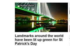 Zahvaljujući Beogradskom irskom festivalu, glavni grad Srbije juče se pridružio globalnoj proslavi najpoznatijeg irskog praznika – Dana Svetog Patrika. Tokom sumraka je nekoliko gradskih lokacija bilo osvetljeno irsko-zelenim svetlom (Most na Adi, Palata Albanija, Ambasada Kanade, hotel Moskva), a festival je tim povodom organizovao i foto konkurs za najlepšu fotografiju OVDE Prelepa fotografija Mosta na Adi našla se i u prilogu na sajtu BBC-ja - link>>  Proslava je juče krenula već od prepodneva kada se u baru Smokvica (Molerova 33) u slavljeničkoj atmosferi služio irski doručak uz obavezan “dres kod” - zelenu garderobu.