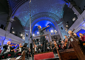 U nedelju, 22. aprila u Kolarčevoj zadužbini od 20h nastupiće pijanista Matija Dedić, Kvartet saksofona Signum i Vojvođanski simfonijski orkestar pod dirigentskom palicom Timoti Redmonda. U okviru prvog dela koncerta naći će se kompozicije: U gradu, tri plesne epizode Leonarda Bernštajna i Ritam Amerike, za kvartet saksofona i orkestar Boba Mincera. Drugi deo programa činiće kompozicije Rapsodija u plavom i Porgi i Bes - simfonijske slike, Džordža Geršvina, a time se obeležava i 120 godina od rođenja ovog čuvenog umetnika.