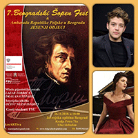 Tradicionalni kulturni program JESENJI ODJECI 7. Internacionalnog Beogradskog Šopen Festa (BŠF), biti održan u ponedeljak 26. novembra, sa početkom u 18 časova u sali Jevrejske opštine, (Ul. Kralja Petra 71a). BŠF i Ambasada Republike Poljske u Beogradu kao pokrovitelj, u partnerstvu sa Jevrejskom opštinom i Fakultetom savremenih umetnosti u Beogradu (FSU), organizuju muzičko-poetsko veče, sa pratećom istorijskom izložbom OČEVI NEZAVISNOSTI. Dela Betovena Lista, Šopena i Paderevskog, izvešće pijanističke zvezde u usponu LAZAR TORBICA i DRAGANA TEPARIĆ. Devetnaestogodišnji pijanista iz Šapca, LAZAR TORBICA, student je 2. godine Akademije umetnosti u Novom Sadu, u klasi renomirane pijanistkinje i prof. Rite Kinke.