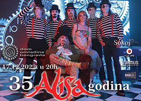 Legendarna pop-rok grupa Alisa obeležiće svoj 35. rođendan velikim koncertom u Domu omladine Beograda, 17. decembra 2022. godine od 20 časova. „Sanja”, „Kesteni”, „Blago onom ko te ne sanja”, „Da li si čula pesmu umornih slavuja“, „Posle devet godina", „Ljubicu te tako", „Skidam košulju da legnem" i „Sećanja“ samo su neki od hitova sa ukupno pet albuma koje je Alisa do sada objavila, a koje će publika moći da čuje na ovom koncertu. Proslava ovog jubileja trebalo je da se dogodi 2020. godine, ali im, iz dobro poznatih razloga, okolnosti nisu išle na ruku i ovaj koncert su morali da odlože.