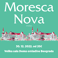 U petak, 30. decembra 2022. u 20:00 // Velika sala Doma omladine Beograda. U okviru manifestacije Beogradska zima, Grad Beograd i Dom omladine Beograda predstavljaju besplatan koncert izvanrednog italijanskog ansambla tradicionalne muzike Moresca Nova, koji će biti održan 30. decembra od 20 časova u Velikoj sali DOB. Besplatne propusnice biće dostupne za preuzimanje na ulazu u DOB na veče održavanja koncerta već od 19 časova pa na dalje, do popunjenosti kapaciteta prostora. Tradicionalni muzički ansambl “Moresca Nova” iz Italije postoji od 1993. godine i dolazi iz grada Gravina in Puglia, nedaleko od Barija.