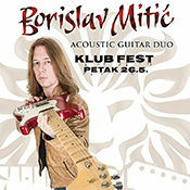 Saljem najavu za koncert Borka Mitica u klubu Fest u petak. Borislav Mitic Borko nas poznati gitarista instrumentalnog neoklasicnog stila svirace uzivo u Festu po prvi put 26.5.2017. Borko ima internacionalnu karijeru, ziveo je dugo u Severnoj Americi i izdavao je za cuveni Shrapnel record koji je otkrio i izdavao gitariste kao Yngwie Malmsteen, Paul Gilbert, Marty Friedman, Greg Howe, Vinnie Moore, Jason Becker... Na svom poslednjem albumu "Electric Goddess" Borko je saradjivao sa bubnjerem Jeremy Colson-om (Steve Vai/Billy idol).