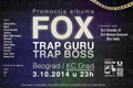 U petak 03.oktobra, sa početkom u 23 časa, u Kulturnom Centru Grad, u Beogradu,održaće se koncertna promocija albuma koji je uzburkao domaću hip hop scenu „Trap Guru Trap Boss”, novosadskog repera Foxa. Beogradska publika će imati priliku da Foxa čuje uživo, zajedno sa gostima: Zhozi Zho, Đare, Furio Đunta, Tatula, Mimi Mercedez, Rimski, Corona, Shef Sale, Goldie, Čudni, Onetake i Shea Pro.