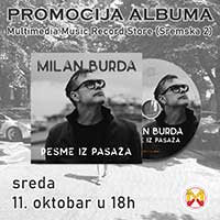 Promocija albuma „Pesme iz pasaža“ Milana Milosavljevića Burde biće održana u sredu, 11. oktobra u 18h u Multimedia Music Record Store (Sremska 2). Milan Milosavljević Burda je klavijaturista, kompozitor, aranžer, snimatelj/miks inženjer i producent iz Srbije. Član je benda „Đura i Mornari“ od 2005. godine... Album „Pesme iz pasaža” na kome je učestvovala sjajna ekipa muzičara: Dragan Jovanović – Krle, Srđan Tanasković, Nikola Demonja, Vlada Novičić, Miloš Đurić, Dejan Resanović, Dorijan Šetina, Ana Štajdohar, Ivana Ćosić… rađen je pune dve godine. Pažljivim odabirom pesama, nastao je CD sa “izuzetno pozitivnim notama”, koji je prilagođen svim muzičkim čulima. Na albumu se nalazi 10 pesama, a singl koji je najavio album i za koji je urađen prvi video spot je pesma „Ko te voli više nego ja“.
