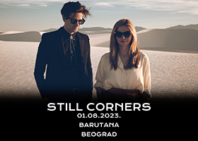 Nakon rasprodatog koncerta u Domu omladine pre skoro četiri godine, synth-dream pop bend Still Corners vraća se u Beograd! Ovaj britansko–američki bend nastupiće 1. avgusta u klubu Barutana, koji je savršen za njihov zvuk i ujedno će biti njihov prvi nastup na otvorenom u Beogradu. Bend Still Corners čine Greg Hjus (Greg Hughes) i Tesa Marej (Tessa Murray), a njihove pesme beleže milionske preglede na Youtube-u i imaju armiju fanova širom u sveta. Greg Hjuz, ‘emigrant’ iz Amerike upoznao je Tesu Marej na železničkoj stanici u Londonu, nakon čega su počeli zajedno da stvaraju muziku kao Still Corners.