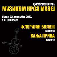 Istorijski muzej Srbije i udruženje „UNICA ART” imaju zadovoljstvo da Vas pozovu da u petak 2. decembra u 19 časova prisustvujete koncertu violiniste Florijana Balaža i pijanistkinje Vanje Price, petom koncertu u okviru treće sezone ciklusa „Muzikom kroz muzej”. Koncert se održava pod pokroviteljstvom Ministarstva kulture Republike Srbije i Sekretarijata za kulturu grada Beograda. Na programu su kompozicije Karola Šimanovskog, Sezara Franka, Žila Masnea i Džona Vilijamsa.