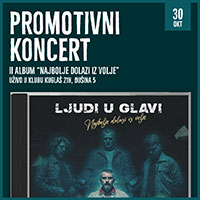 Bend Ljudi u Glavi uživo će promovisati svoj drugi album „Najbolje dolazi iz volje“ u nedelju, 30. oktobra u klubu Kuglaš. Ljudi u Glavi je bend iz Trstenika koji je krajem 2013. godine osnovao Nenad Pešterac - gitarista, glavni vokal i glavni autor. Sviraju alternativni rok, bez strogo definisanog pravca kojim se kreću. Slušaju i opažaju sve novonastale podžanrove rokenrola. Trenutni članovi benda su Nenad Pešterac (vokal, gitara), Nemanja Marković (vokal, gitara), Dragan Džamić (bubanj), Ivan Vukosavljević (bubanj, perkusije) i Tadija Djurović (bas gitara).