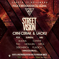 Veliki hip hop spektakl „Street Vision“, koji će okupiti najveće zvezde regionalne rap, trap, drill scene, biće održan u subotu, 19. novembra u Hali 5 Beogradskog sajma. Tom prilikom zajedno na sceni će se naći izvođači koji važe za trenutno najpopularnije muzičare na našim prostorima i čije pesme ne izlaze iz trendinga – trap senzacija Crni Cerak i Lacku, regionalne legende ovog žanra Fox i Surreal, popularni reper Mili, „najtvrđi“ zagrebački dvojac 30zona, jedan od najpopularnijih sarajevskih repera Cunami, TNG, Micka Lifa, Grca, Designerica i Pljugica i mnogi drugi.