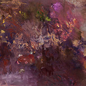 Ljubičasti sat je vreme melanholične ambivalencije. Čas sumračja. To je sat koji francuzi zovu entre chien et loup, između psa i vuka, kada jedan liči na drugoga i ne mogu se raspoznati. Slični su u polutami, oba postaju uznemirena pod električnim strujanjima lampirida, svitaca. Taj trenutak u smiraj kada se pojačaju svi mirisi, list smiri na grani a ptice otpočnu svoj večernji uspon, kruženje, pesmu, spuštanje. To je sat koji se tako živo upleo u slike Mileta Šaule.