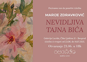 Izložba u Galeriji Lucida Čika Ljubina 11, u peridu od 23.juna do 14. jula. Otvaranje izložbe zakazano je za sedu 23. Jun u 18h. "Uled savremenih tendencija koje favorizuju suv koncept, anuliranje mimetičkog ili figuraciju angažovanog narativa, opstaje slikarstvo prijatno, nežno, prihvaćeno, umetnice Marije Zdravković, uporne u svom istrajavanju i logičnom kontinuitetu, na relaciji preciznog Direrovskog aranžmana kada su u pitanju jasne predstave biljaka i cveća, i Moneovog impresionističkog pristupa sličnoj temi.