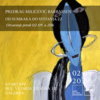 Izložba „Od sumraka do svitanja 22“ umetnika Predraga Milićevića Barbariena biće otvorena u petak 02. septembra sa početkom u 20 sati u izložbenom prostoru KvArt BW, na drugom spratu TC Galerija. Izložba reprezentativnih ostvarenja Predraga Milićevića Barbariena obuhvata period od 1992. do 2013. godine. Naziv izložbe je i naziv njegovog poznatog umetničkog dela, tema kojoj se često vraćao, refresh jedinstvenog opusa. Sa svojom infantilnom voljom za moći nad okolinom, svojom znatiželjom, koja je uvek nanovo poimala svet, Barbarien se, slikajući, oslobađao osećaja inferiornosti.