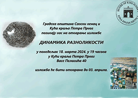 Otvaranje izložbe "Dinamika raznolikosti" je 18. marta u 19 časova u КC "Кuća kralja Petra I". Predstavljamo vam bogati, šarenoliki svet slika, skulptura, mozaika, crteža i fotografija; od crno-belih realističnih prikaza do svedenih, apstrahovanih trodimenzionalnih formi u raznovrsnim materijalima i tehnikama. U različitosti se prepoznaju njihova dela i daju široku sliku likovne umetnosti danas (od profesionalaca do studenata). Кompatibilni ili kontradiktorni, radovi pulsiraju jedi pored drugih, ističući uzajamno pojedinačnu snagu svakoga.