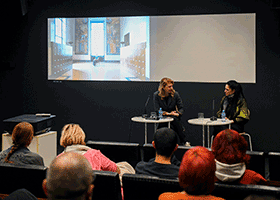 U ponedeljak, 11. marta u Muzeju savremene umetnosti održan je razgovor sa umetnicom Jasminom Cibic, povodom prikazivanja njenog filma “Svetionici (Beacons)” u okviru Programa umetničkog filma Artist’s Film. Razgovor je vodila Una Popović, kustoskinja Zbirke fotografije, filma, videa i digitalnih medija u MSU. Marijana Kolarić, direktorka Muzeja savremene umetnosti i urednica programa Artist’s Film, povodom gostovanja Jasmine Cibic je izjavila: “Sa zadovoljstvom i ove godine nastavljamo sa programom umetničkog filma u MSU. Film Svetionici je u nekoliko značajnih scena sniman u Srbiji, te smo Jasmini u toku snimanja filma pomogli da dobije odobrenja za lokacije snimanja u Beogradu.