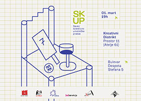 Otvaranje prostora u kome će SKUP (Savez kolektivne umetničke prakse) pripremiti donatorsku aukciju umetničkih radova, koji su članovi/ce ovog saveza donirali kao zalog za budućnost rada SKUP-a, je planirano 1. marta u 19 časova (Bulevar Despota Stefana 5 / Kreativni Distrikt - Prostor 11, Atelje 61) , uz donatorsku aukciju i predstavljanje prostora. Učešće u donatorskoj aukciji nije obavezno, dobro raspoloženje je očekivano, prigodno piće je obezbeđeno, prisustvo umetnica i umetnika je zagarantovano. Više o nama, umetnicima / umetnicima i umetničkim delima koji će biti na aukciji možete pročitati i videti u linkovanom KATALOGU.