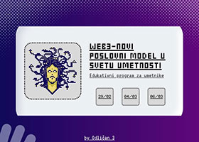 “Web3 - novi poslovni model u svetu umetnosti”  je program koji ima za cilj da podrži srpske umetnike i pruži im priliku da unaprede tradicionalni poslovni model, novim globalnim modelom nastalim tokom poslednje decenije upotrebom blokčejn tehnologije. Jednu od glavnih aktivnosti programa predstavljaju edukativne radionice koje će biti održane 29.02./04.03./06.03 na Fakultetu Organizacionih nauka u Beogradu. Glavni cilj radionica je osposobljavanje polaznika u samostalnom kreiranju NFT kolekcija od svojih postojećih fizičkih ili digitalnih umetničkih radova, postavljanju na relevantne platforme za prodaju i razumevanju funkcionisanja NFT sveta. Pozivamo zainteresovane umetnike da se prijave LINK >> na edukativni deo programa: