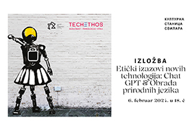 Otvaranje izložbe „Etički izazovi novih tehnologija: ChatGPT i obrada prirodnih jezika“, je u utorak 6. februara, u 18 časova, u Kulturnu stanicu Svilara. Ovu izložbu KS Svilara organizuje u saradnji sa Centrom za promociju nauke. Već godinu dana u žiži interesovanja je ChatGPT, jedan od najnaprednijih čet-botova. Čet-botovi naprednu tehnologiju obrade prirodnih jezika koriste kao „gorivo“. Кako bi usmeno ili pismeno razgovarali sa nama, potrebno je da savladaju naš jezik i način komunikacije. ChatGPT može da razgovara na čak 95 svetskih jezika! I ne samo što može da razgovara, već može i da piše kratke priče, poeziju, imejlove, seminarske radove.