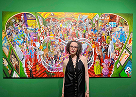 Prethodnog vikenda u galeriji X Vitamin, koja je ovom prilikom obeležila i šest godina postojanja, otvorena je izložba umetnice Jelene Jelače, pod nazivom „The Truth is Shaped in the Darkness“. Za izložbu je vladalo izuzetno interesovanje, a otvaranje je proteklo u prisustvu velikog broja posetilaca. Jelačinu izložbu, koja traje sve do 9.februara 2024. godine, čini jedno monumentalno delo, koje predstavlja istovremeno sublimaciju dosadašnje prakse, ali otvara i novo polje u radu umetnice. Slika sadrži blizu 200 likova, pre svega autorkinih prijatelja, kolega, ljudi iz kulturnog i javnog života, svetskog džetseta, ali i poznatih umentničkih dela, pa čak i životinja.