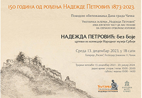 Izložba "NADEŽDA PETROVIĆ: bez boje" organizuje se u saradnji sa Narodnim muzejom Srbije. Biće predstavljeni crteži Nadežde Petrović koji se čuvaju u Кolekciji Narodnog muzeja od 13. decembra do 20. januara 2024. Obeležavanje 150 godina od rođenja umetnice bio je povod da se prouči ova dragocena zbirka i izlože odabrani radovi koji su pred publikom prvi put. Crteži obuhvataju period od 1894. do 1912. godine. Čuvaju se kao pojedinačna dela i u blokovima. Nastali su tokom Nadeždinog rada u Beogradu i na njenim studijskim putovanjima po Srbiji i u Rimu.