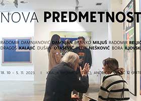 NOVA PREDMETNOST sedam umetnika na dve lokacije: Radomir Damnjanović Damnjan | Branko Miljuš | Radomir Reljić | Dragoš Kalajić | Dušan Otašević | Peđa Nešković | Bora Iljovski. Izložba NOVA PREDMETNOST, postavljena na dve lokacije – Galerija Studentskog kulturnog centra (Kralja Milana 48) i ARTE galerija (Andrićev venac 12), koja predstavlja radove sedam umetnika – RadomiraDamnjanovića Damnjana, Branka Miljuša, Radomira Reljića, Dragoša Kalajića, Dušana Otaševića, PeđeNeškovića, Bore Iljovskog – otvorena je sinoć u prisustvu velikog broja ljudi. Obe postavke je moguće pogledati do 5. novembra, radnim danima od 11 do 19 h, subotom od 10 do 15 h. U obe galerije se nalaze radovi svih sedam autora.