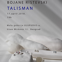 Izložba pod nazivom „Talisman“, umetnice Bojane Ristevski biće otvorena 17. aprila od 19h u Maloj galeriji ULUPUDS-a (Uzun Mirkova 12). Na svojoj drugoj samostalnoj izložbi, umetnica će predstaviti svojevrsni nastavak  istraživanja forme, koji nam je u ovoj galeriji po prvi put prikazala pre nepune dve godine. U formalnom oblikovanju, crtež je i dalje osnova iz koje nastaju svi radovi u drugim tehnikama, a arhetipski simboli koje dolaze iz podsvesti i riznice kolektivno nesvesnog  predstavljaju nepresušni izvor inspiracije u njenom radu.