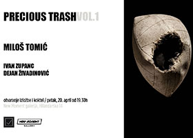 U galeriji New Moment, u petak 20. aprila 2018. godine u 19.30 časova biće otvorena izložba Miloša Tomića, eminentnog multimedijalnog umetnika beogradske scene sa internacionalnom karijerom, pod nazivom Precious Trash Vol.1 (Dragoceni otpad). Projekat je nastao u saradnji sa Ivanom Zupancom i Dejanom Živadinovićem. Fascinacija otpadom i odbačenim predmetima datira od Tomićevog ranog detinjstva i objet trouvé (prim. prev. Pronađeni objekat) postaju integralni deo njegove prakse od samog početka.