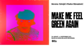 Izložba "Make me feel green again" Nevene Ostojić i Marka Obradovića održaće se od 24. avgusta do 4. septembra 2022. // Galerija Doma omladine Beograda. Otvaranje: sreda, 24. avgust u 19:00 časova. Izložba "Make me feel green again" je koncipirana kao iskustvo koje pruža atmosferu oaze unutar galerijskog prostora sa ciljem da preispita pozicije transhumanizma i ekologije. Povezuje se plastično i organsko, digitalno i materijalno. Strah od propadljivosti okoline i nadolazeće nemaštine nas tera u fantazije o utopiji i fetišizacije distopije.